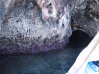 洞窟の中に入って後ろを見ると太陽光に反射した海底が見事に海水を青に輝かせている。「うわぁぁぁすごくキレイだ!!」なんて騒いでいると2分もしないうちに出てしまってガッカリ。しかもチップをせびられて凄くムカついた。他の船頭さんみたいに「さん〜た〜る・ちぃあ〜♪」って唄ってくれてでもすれば納得だけど・・・。→ | ![]() |