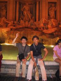 夕食をトラットリアで済ませて「トレビの泉」へ。11時頃行ったが、まだ大勢でゴッタ返していた。 コインを投げてくるの忘れた・・・ 小室は、この時しっかり投げてやがる。 |