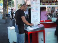 イタリア風かき氷。 お兄さんが持っている秘密兵器で氷を「ガッガッッッガ」と削ってコップに入れていきシロップをかけていっちょ上がり。 |