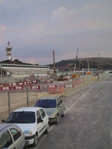ヘレスサーキットはただ今、大改修中。 サーキットの路面も新しくなってグリップ がちょっと良くなってギャップも少なくな ったが、改修直後にクルマのレースを 開催したら高速コーナーの一部分のアス ファルトがめくれてしまい、緊急改修の 為にBSのテストが急遽中止になった。 |